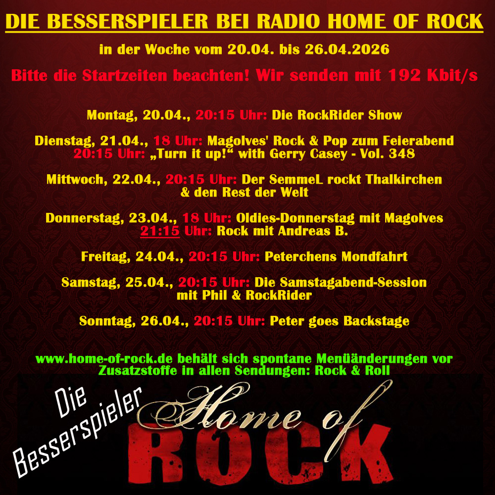 24/7 Rockmusik für Kenner, ohne Mainstream-Lala, dafür mit Heart & Soul, Interaktion, Information, Themenstreams und jeden Abend Livesendungen.
